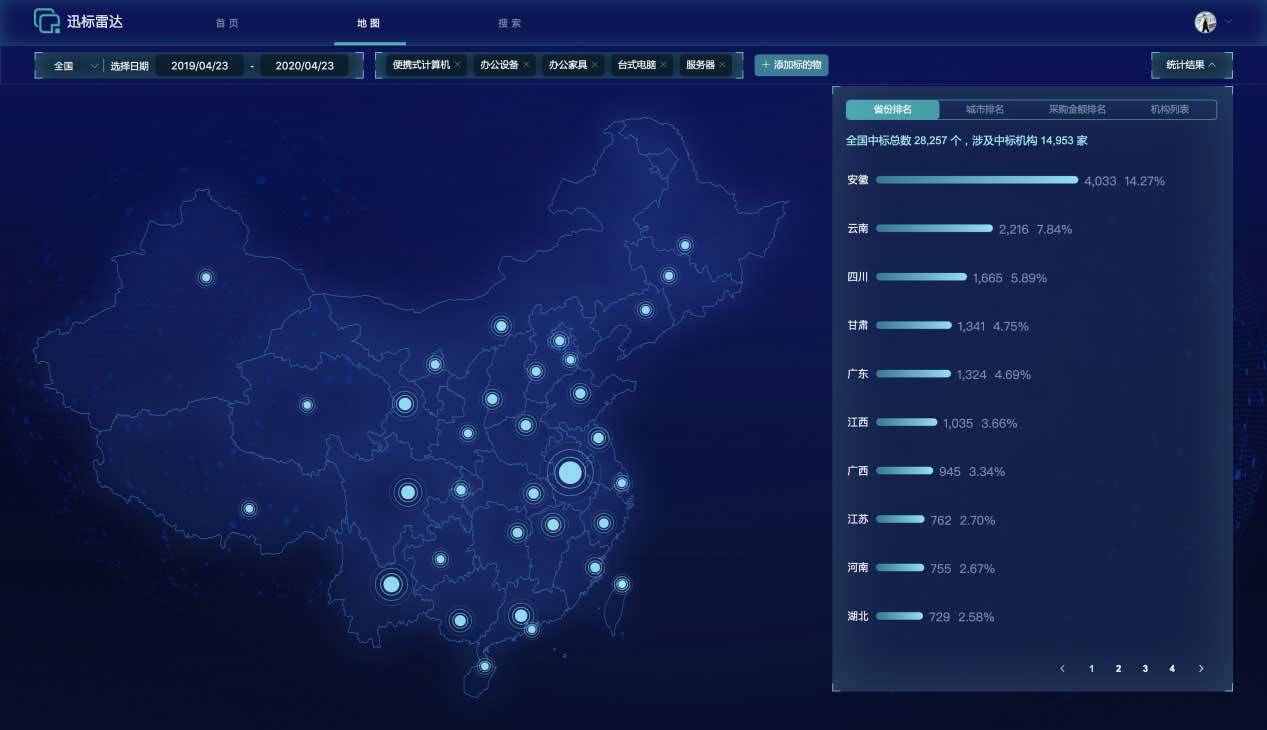 标讯雷达是一款为企业提供B2B2B渠道销售拓客服务的人工智能产品,旨在借助AI技术,帮助企业从全国亿级招中标信息中,筛选出中标机构,拓展为销售渠道,提升渠道拓客效率。同时提供招中标信息预测服务,提升客户信息获取和决策效率。